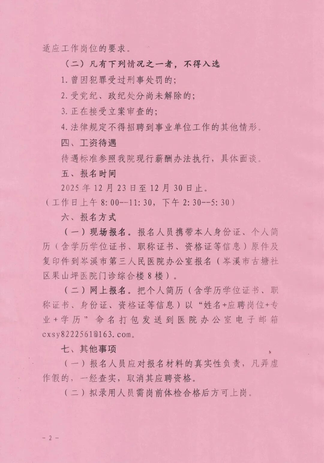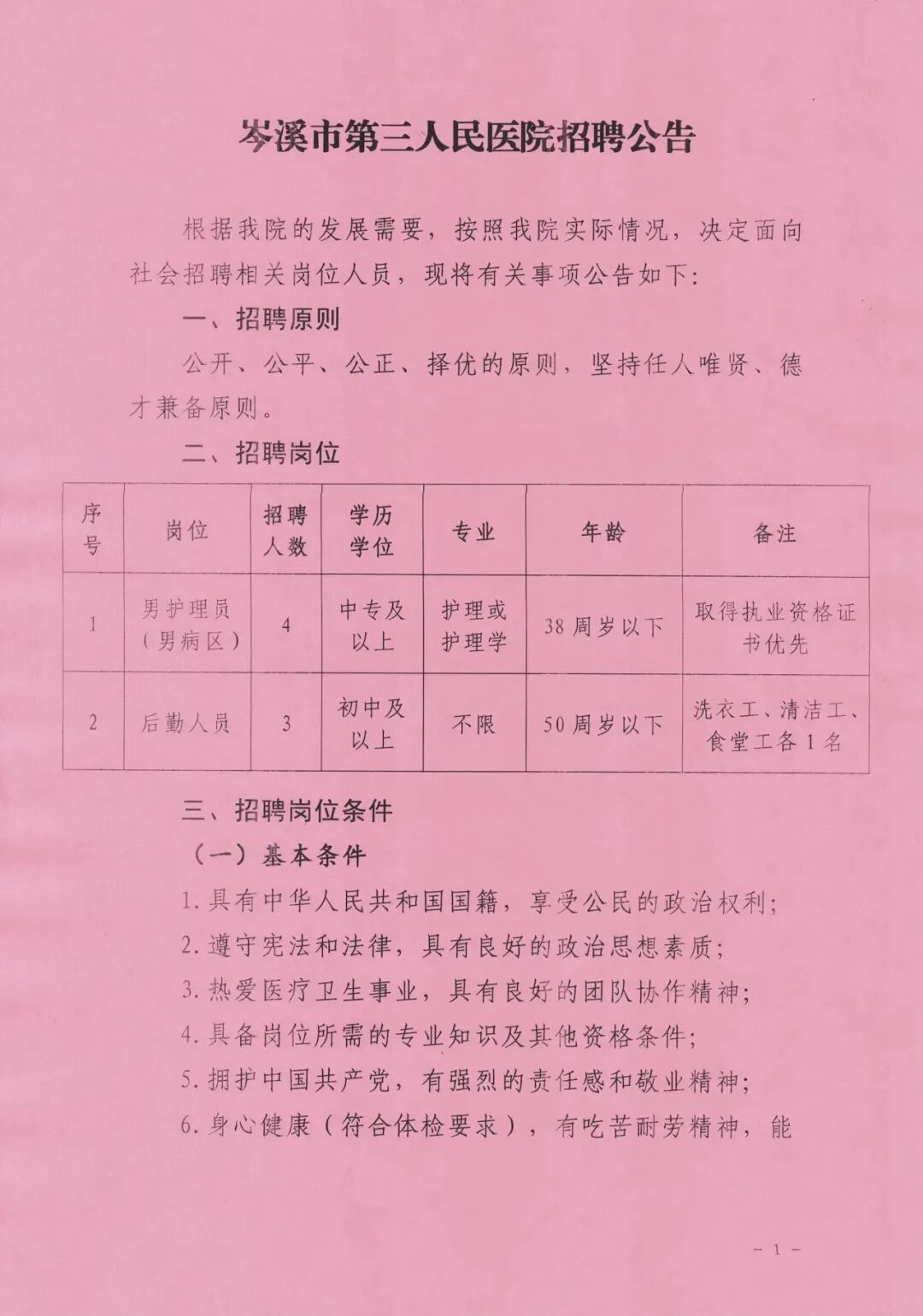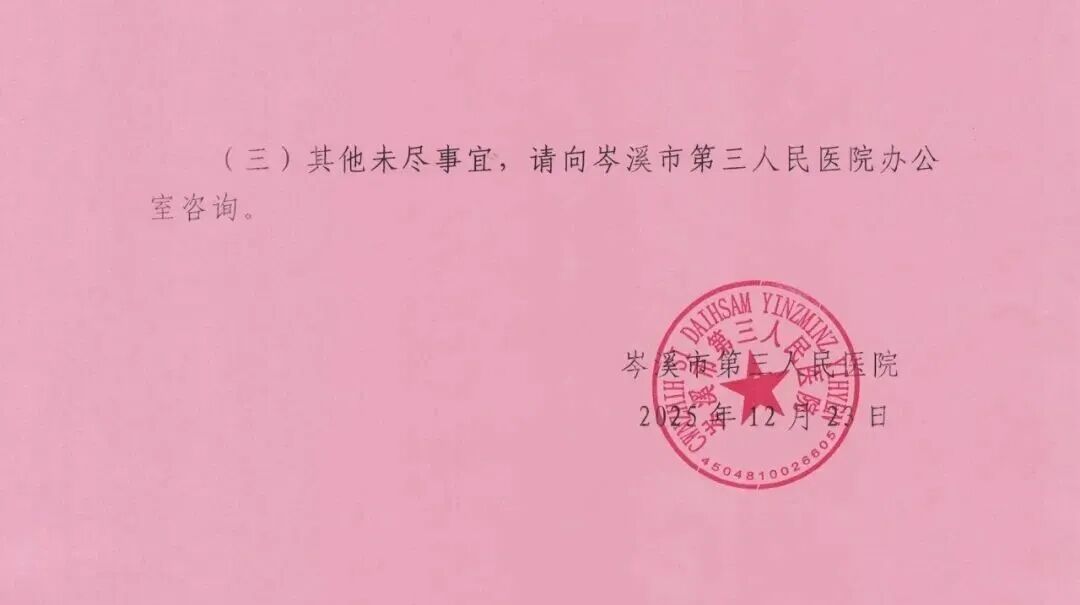 岑溪市第三人民医院12月23日发布招聘公告,公开招聘护理人员4名,后勤人员3名,报名截至12月30日,可现场或线上报名,相关事项如下: